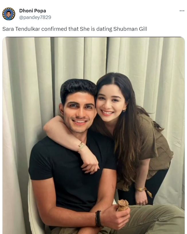 अब दोनों की इंटरनेट पर एक फोटो खूब वायरल हो रही है, जिसमें शुभमन गिल चेयर पर बैठे हैं और सारा तेंदुलकर उन्हें साइड से गले लगा रही हैं। ये फोटो फैंस का ध्यान अपनी तरफ खींच रही है, जहां कई फैंस ये सोचकर खुश हो रहे हैं कि दोनों ने अपना रिश्ता ऑफिशियल कर दिया है। ये फोटो मॉर्फ्ड है। सारा तेंदुलकर तो वहीं हैं, लेकिन चेयर पर बैठे हुए शख्स भारतीय क्रिकेटर शुभमन गिल नहीं है।