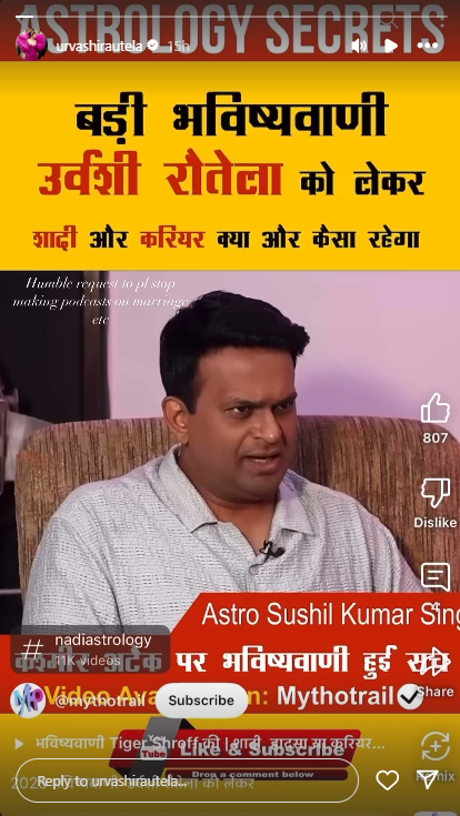 इस वायरल वीडियो में टीवी होस्ट सिद्धार्थ कानन एक एस्ट्रोलॉजर से उर्वशी रौतेला की शादी को लेकर सवाल करते हैं। जवाब में एस्ट्रोलॉजर कहते हैं, “उर्वशी को अगले एक साल में शादी कर लेनी चाहिए, वरना बात लंबी खिंच जाएगी और दिक्कतें आ सकती हैं।” साथ ही उन्होंने ये भी जोड़ा कि जुलाई 2026 से उर्वशी के करियर में एक नई उछाल देखने को मिल सकती है।