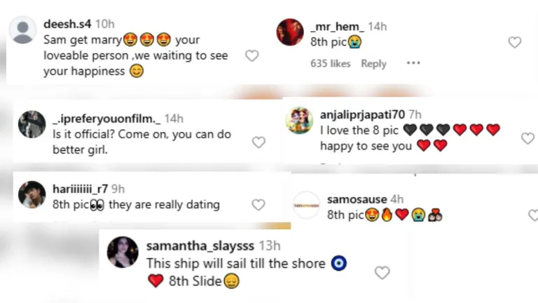 समांथा की पोस्ट पर फैंस ने कमेंट्स की बौछार कर दी है। एक यूजर ने लिखा, “फोटोज की 8वीं स्लाइड देखकर लग रहा है कि यह जहाज अब किनारे तक जाएगा।” दूसरे ने लिखा, “राज के साथ आपकी फोटो बहुत प्यारी लगी, आप दोनों को देखकर खुशी हुई।” एक और यूजर ने तो साफ कहा, “अब तो कंफर्म हो गया… ये दोनों सच में डेट कर रहे हैं।”