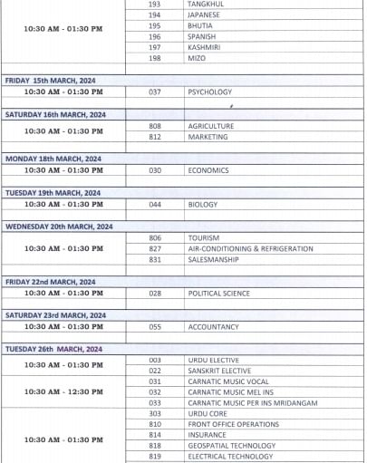 CBSE द्वारा जारी डेटशीट के अनुसार, परीक्षाएं दो पालियों में होंगी| पहली परीक्षा सुबह 10.30 बजे से शुरू होगी और दोपहर 1.30 बजे खत्म होगी| वहीं दूसरी परीक्षा सुबह 10.30 से 12.30 बजे तक चलेगी| यह परीक्षाएं 56 दिन तक चलने वाली हैं|