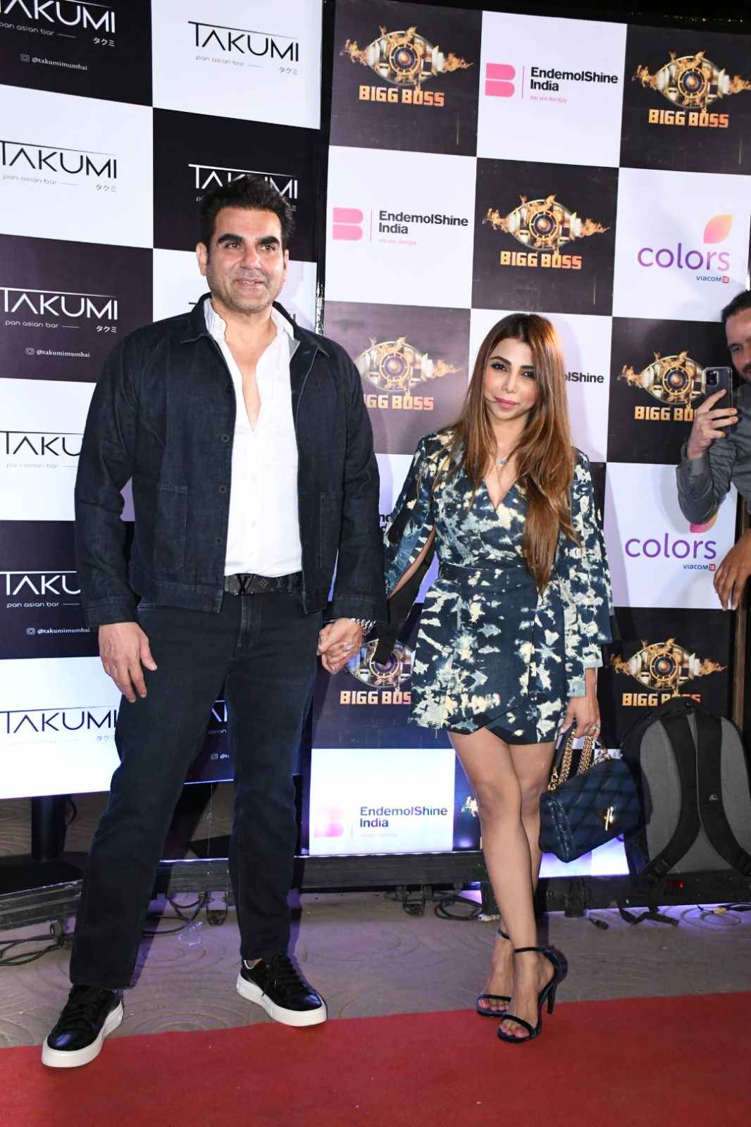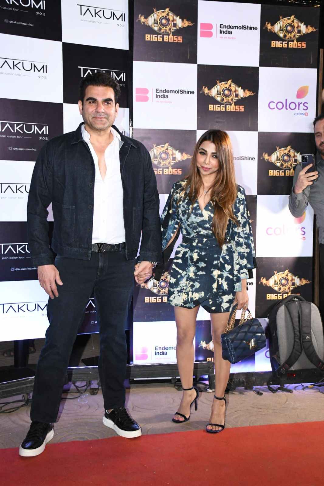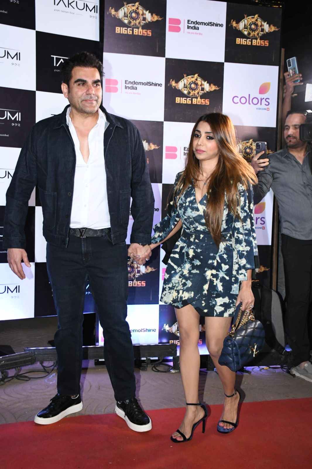 बिग बॉस की सक्सेस पार्टी में अरबाज अपनी नयी दुल्हनियां शूरा के साथ हाथों में हाथ थामे नजर आये हैं| पार्टी में जहाँ बिग बॉस के कंटेस्टेंट अपने शानदार अवतार से तहलका मचा रहे थे वहीं अरबाज और शूरा ने पहुंच कर पूरी लाइमलाइट लूट ली| अरबाज ब्लैक जैकेट में शानदार लगे तो वहीं शूरा मिनी ड्रेस में सिजलिंग लगीं|