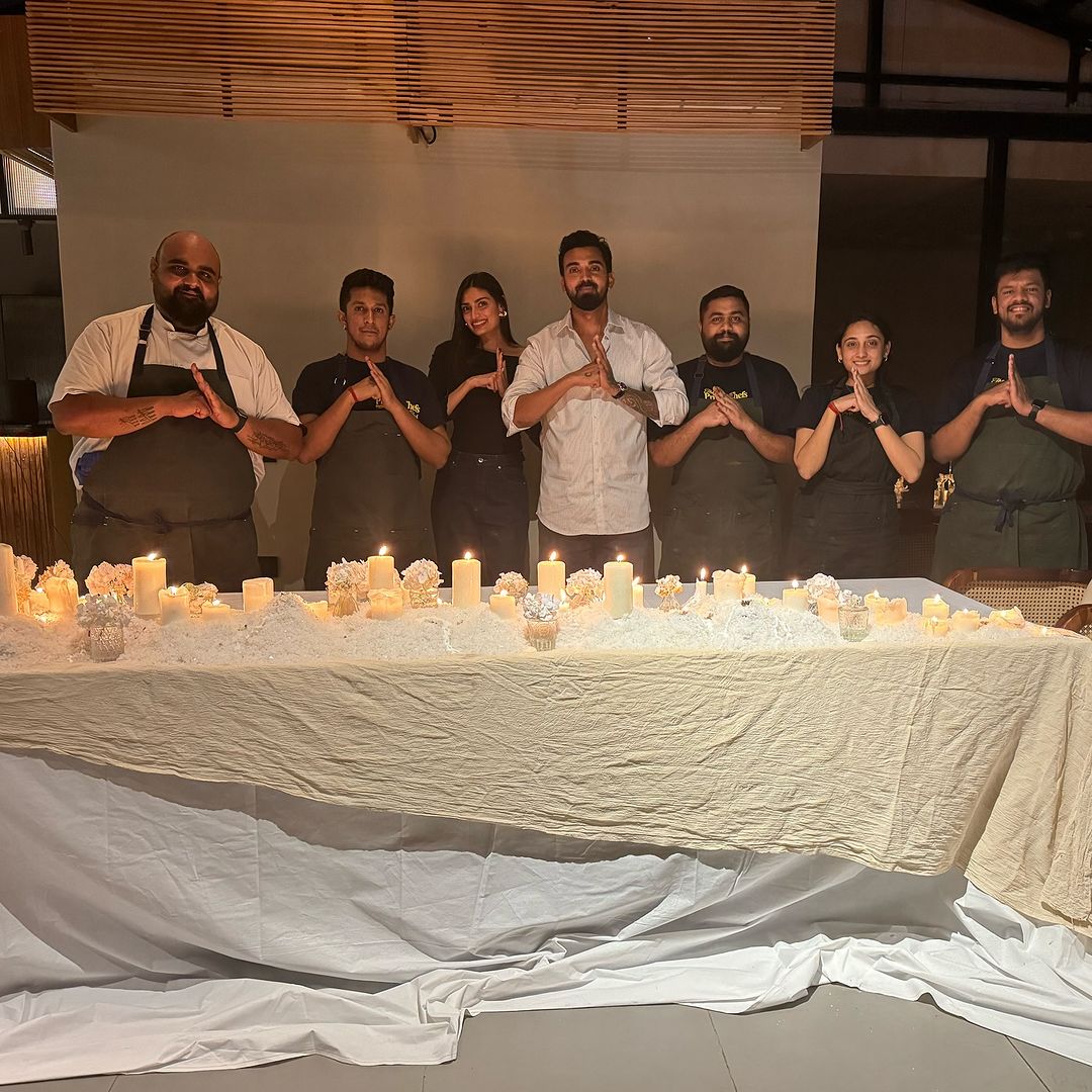 अथिया – राहुल ने अपनी शादी की पहली एनिवर्सरी वाले दिन कैंडल लाइट डिनर का आयोजन किया| फोटोज में कपल शेफ और टीम के साथ पोज देते नजर आ रहे हैं|
