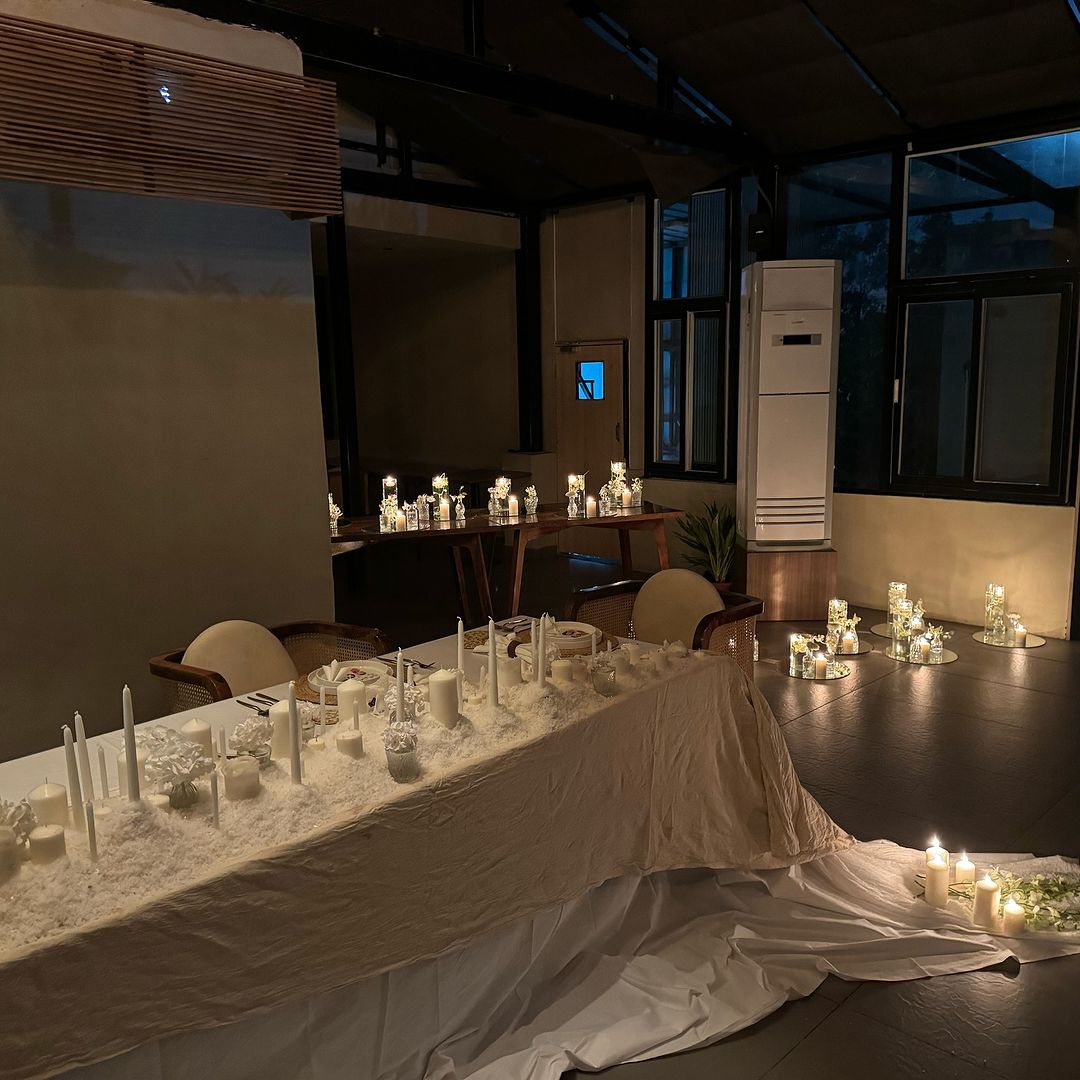 एनिवर्सरी पर कपल ने फंक्शन को व्हाइट थीम के साथ एन्जॉय किया| व्हाइट लाइट से लेकर व्हाइट टेबल, कैंडल और फूल समेत हर चीज को व्हाइट ही रखा गया था|