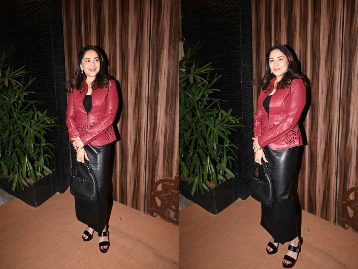 माधुरी दीक्षित भी भाग्यश्री की पार्टी में नजर आईं हैं| इस दौरान उन्होंने ब्लैक लैदर स्कर्ट के साथ रेड लैदर की जैकेट पहनी हुईं थी| माधुरी का लुक काफी स्टाइलिश लग रहा था|