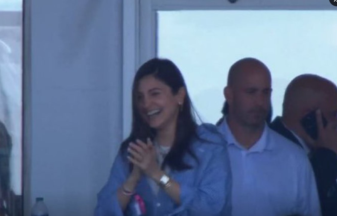 वहीं अनुष्का शर्मा की एक और तस्वीर वायरल हो रही है, जिसमें टीम इंडिया की खुशी पर वो बड़ी सी मुस्कान के साथ नजर आ रही हैं| आपको बता दें कि अनुष्का हर मैच में पति विराट को चीयरअप करने पहुंचती हैं|