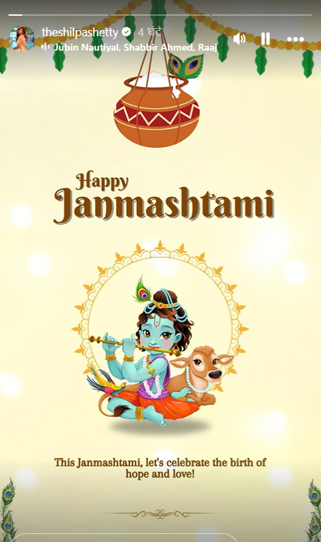 शिल्पा शेट्टी ने अपने परिवार के साथ इस त्योहार की धूमधाम से तैयारी की है। हर साल की तरह, इस बार भी उन्होंने जन्माष्टमी के अवसर पर अपने घर पर माखन से मटकी तोड़ने की परंपरा निभाई। उन्होंने अपने फैंस को जन्माष्टमी की शुभकामनाएं देते हुए अपने इंस्टाग्राम पर पोस्ट किया, जो उनके त्योहार मनाने के उत्साह को दर्शाता है।