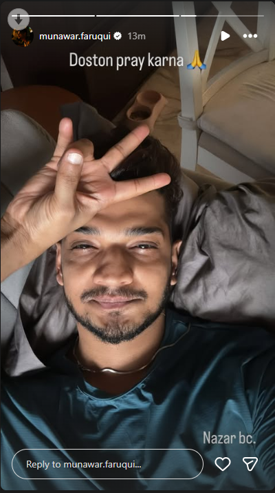 मुनव्वर ने हाल ही में अपनी इंस्टाग्राम स्टोरी पर एक पोस्ट शेयर किया, जिसमें वो मायूस और थके हुए नजर आ रहे हैं। इस पोस्ट में उन्होंने लिखा, “दोस्तों, प्रे करना ? नजर।” इस इशारे से फैंस यह समझ रहे हैं कि मुनव्वर शायद ‘नज़र लगने’ को अपनी तबीयत बिगड़ने की वजह मान रहे हैं।