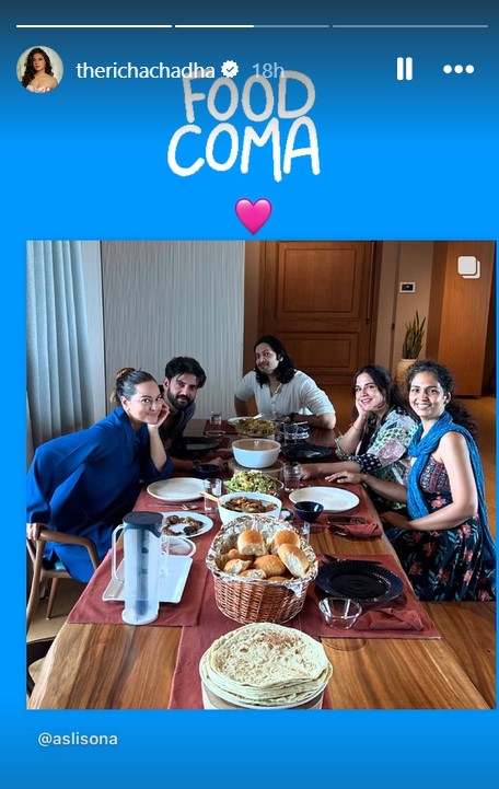 हाल ही में ऋचा चड्ढा ने अपने पति अली फज़ल, ‘हीरामंडी’ को-स्टार सोनाक्षी सिन्हा और जहीर इकबाल के साथ कुछ यादगार तस्वीरें साझा कीं। इन तस्वीरों में सभी सितारे एक साथ मस्ती करते हुए नजर आ रहे हैं। ऋचा ने अपनी इस खास संडे को लेकर सोशल मीडिया पर फैंस के साथ खूबसूरत तस्वीरें साझा की हैं, जिनमें उन्होंने अपनी बेटी की भी एक झलक दिखाई।