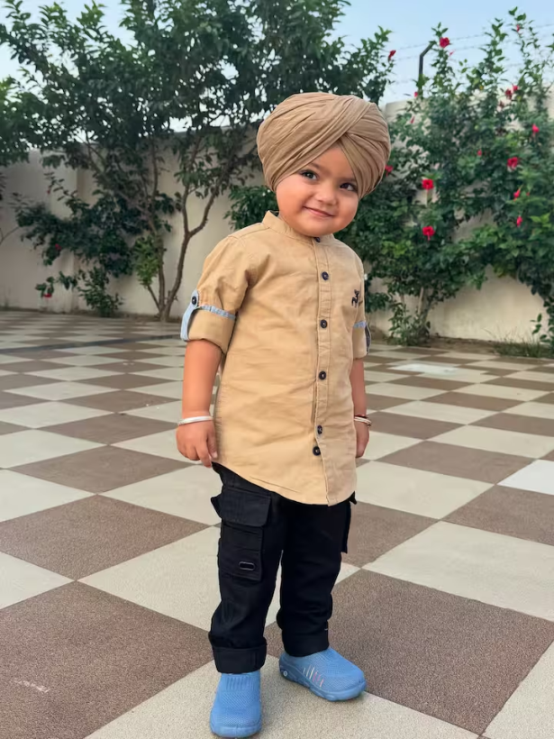 होली के मौके पर शुभदीप ने सफेद पठानी सूट, नीली पगड़ी और ट्रेडिशनल चप्पल पहनकर सभी का ध्यान खींचा। उनके गालों पर हल्का रंग और मासूम मुस्कान ने फोटो को और भी खास बना दिया। सोशल मीडिया पर फैंस ने लिखा कि “ये तो त्योहार का स्टार है।”