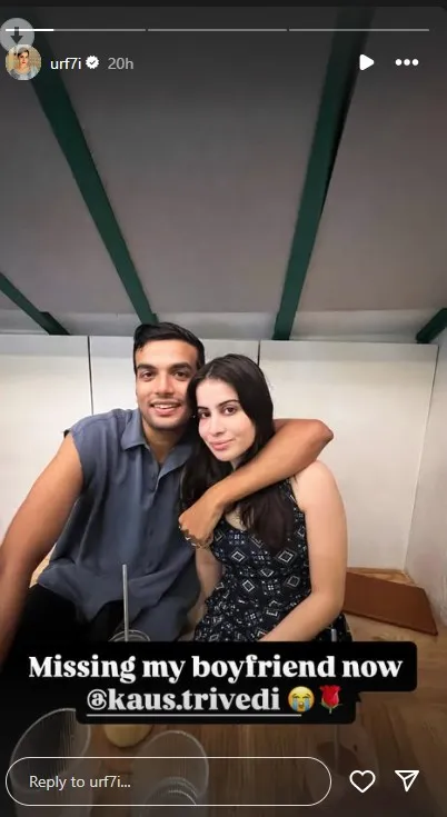 उर्फी जावेद ने अपने इंस्टाग्राम अकाउंट पर एक फोटो शेयर की, जिसमें वह अपने बॉयफ्रेंड के साथ नजर आ रही हैं। तस्वीर में दोनों कॉफी का मजा लेते हुए काफी खुश दिखाई दे रहे हैं। इस फोटो को शेयर करते हुए उर्फी ने लिखा, “अब मुझे अपने बॉयफ्रेंड की याद आ रही है।”