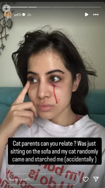उर्फी ने इंस्टाग्राम पर अपनी चोट का कारण भी बताया। उन्होंने लिखा, “कैट पेरेंट्स क्या आप रिलेट कर सकते हैं? मैं बस सोफे पर बैठी हुई थी और मेरी कैट अचानक आई और मुझे नोच लिया (गलती से)।” तस्वीरों और वीडियो में साफ देखा जा सकता है कि उनकी आंख के नीचे गहरा जख्म है और वहां से लगातार खून निकल रहा है। साथ ही आंख में सूजन भी आ गई है।