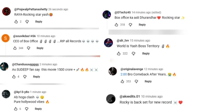 टीजर रिलीज होते ही कमेंट बॉक्स फैंस की प्रतिक्रियाओं से भर गया। एक यूजर ने लिखा, “भाई की सालों बाद धमाकेदार वापसी।” दूसरे ने कहा, “ये दुनिया यश का इलाका है।” वहीं किसी ने लिखा, “बॉक्स ऑफिस का धुरंधर लौट आया।” कई फैंस ने टीजर को हॉलीवुड लेवल का बताया, तो कुछ ने तो फिल्म की कमाई 1500 करोड़ से ज्यादा होने का दावा भी कर दिया। एक यूजर ने यहां तक लिखा, “यश बॉक्स ऑफिस के CEO हैं, सारे रिकॉर्ड टूटने वाले हैं।”