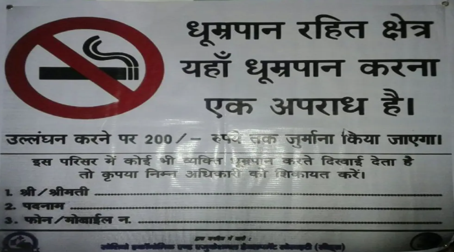 1-कोई भी व्यक्ति किसी सार्वजनिक स्थान पर धूम्रपान नहीं करेगा।