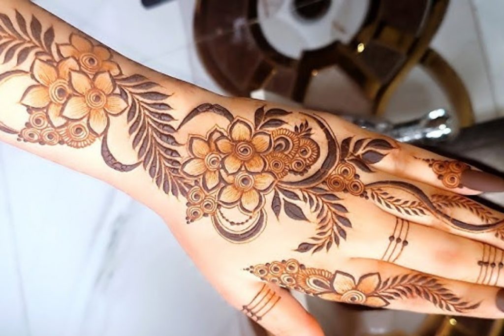 फूलों और बेलों से बनी यह डिजाइन खासकर उन महिलाओं के लिए है जो कम भराव में ज्यादा खूबसूरती चाहती हैं। कमल, गुलाब और अन्य फूलों की आकृतियां हाथों को एक कोमल और एलिगेंट लुक देती हैं।