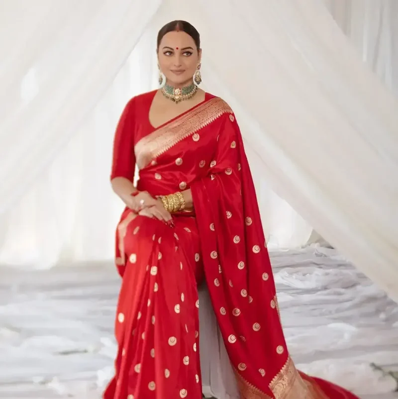 सोनाक्षी सिन्हा की साड़ी स्टाइल करवा चौथ के लिए बिल्कुल परफेक्ट है। अगर यह आपका पहला करवा चौथ है, तो इस लुक को अपनाकर आप खुद को खास महसूस कर सकती हैं।
