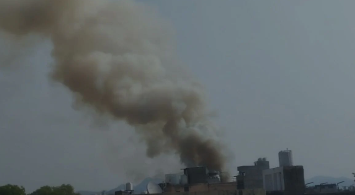 होटल में आग लगने के बाद उठता धुएं का गुबार