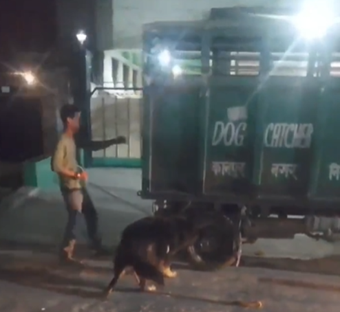 नगर निगम और पुलिस ने कुत्ते को पकड़ा