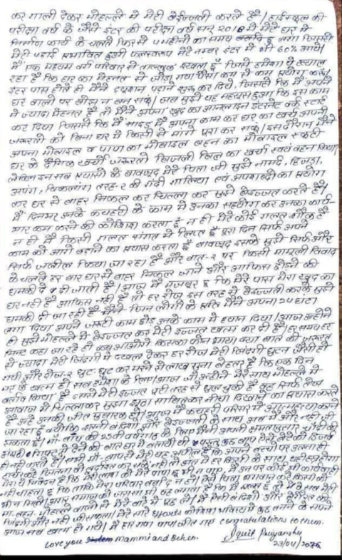 अंतिम इच्छा है कि सभी लोग इस सुसाइट नोट को अंत तक पढ़े….