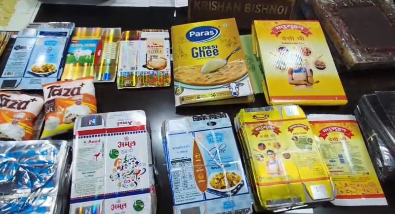 पुलिस ने छापेमारी के दौरान 38 पेटी अमूल देशी घी, 20 टिन मधुसूदन घी, 466 रेपर विभिन्न ब्रांडों के, 05 मोबाइल फोन, स्विफ्ट डिजायर कार (DL3CBL8550) छोटा हाथी टेम्पो (UP15HT 3379), नकली घी बनाने के उपकरण, 2 गैस चूल्हे, 1 गैस सिलेंडर, बेट मशीन, 2 पैकिंग मशीन, 40 लीटर का भगोना, सिलाई मशीन, लोहे का प्रेस, एसेंस की बोतल, ब्रांड डाई, कैंची, टेप कटर, टेप, ग्लास, फेविकोल, विभिन्न ब्रांड के गत्ते के रेपर आदि बरामद किया।