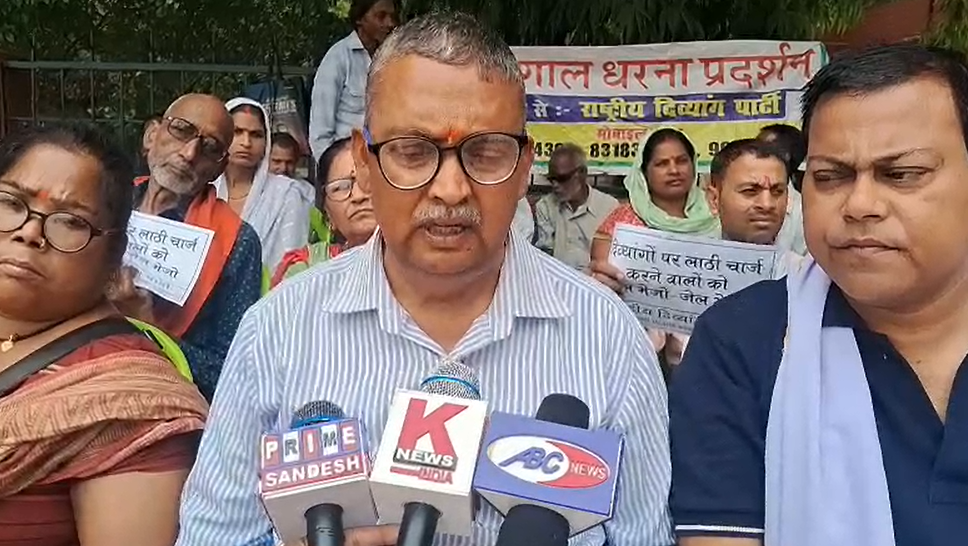 नेत्रहीन छात्रों पर बर्बरतापूर्वक लाठीचार्ज से नाराज राष्ट्रीय दिव्यांग पार्टी ने दिया धरना