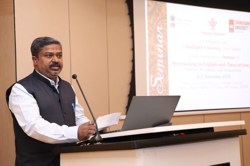 डिजिटल डेस्क- भारत सरकार के संस्कृति मंत्रालय के अधीन कार्यरत प्रतिष्ठित साहित्यिक संस्था साहित्य अकादमी और चंडीगढ़ यूनिवर्सिटी, उत्तर प्रदेश के संयुक्त तत्वावधान में उन्नाव में दो दिवसीय राष्ट्रीय सेमिनार का शुभारंभ हुआ। आधुनिक समय में अंग्रेज़ी लेखन और अनुवाद की भूमिका को समझने तथा युवा लेखकों को मार्गदर्शन देने के उद्देश्य से आयोजित इस विशेष सेमिनार में कहानी कहने की बदलती शैली, नए प्रयोग, और समकालीन साहित्यिक प्रवृत्तियों पर विस्तृत चर्चा हुई। इस राष्ट्रीय सेमिनार का मुख्य विषय “स्टोरीटेलिंग इन इंग्लिश एंड ट्रांसलेशन्स: विज़न्स, रिविज़न्स एंड इनोवेशन्स” रखा गया, जिसके तहत चार थीम-आधारित सत्र आयोजित किए गए। इनमें आधुनिक कहानी कहने की तकनीकें, पुनर्कथन की प्रक्रिया, नई रचनात्मक विधाएँ और पौराणिक कथाओं के आधुनिक रूप जैसे महत्वपूर्ण मुद्दों पर विमर्श हुआ। कार्यक्रम में शोध–पत्र प्रस्तुतियाँ, कविता पाठ और संवाद सत्र भी शामिल रहे।