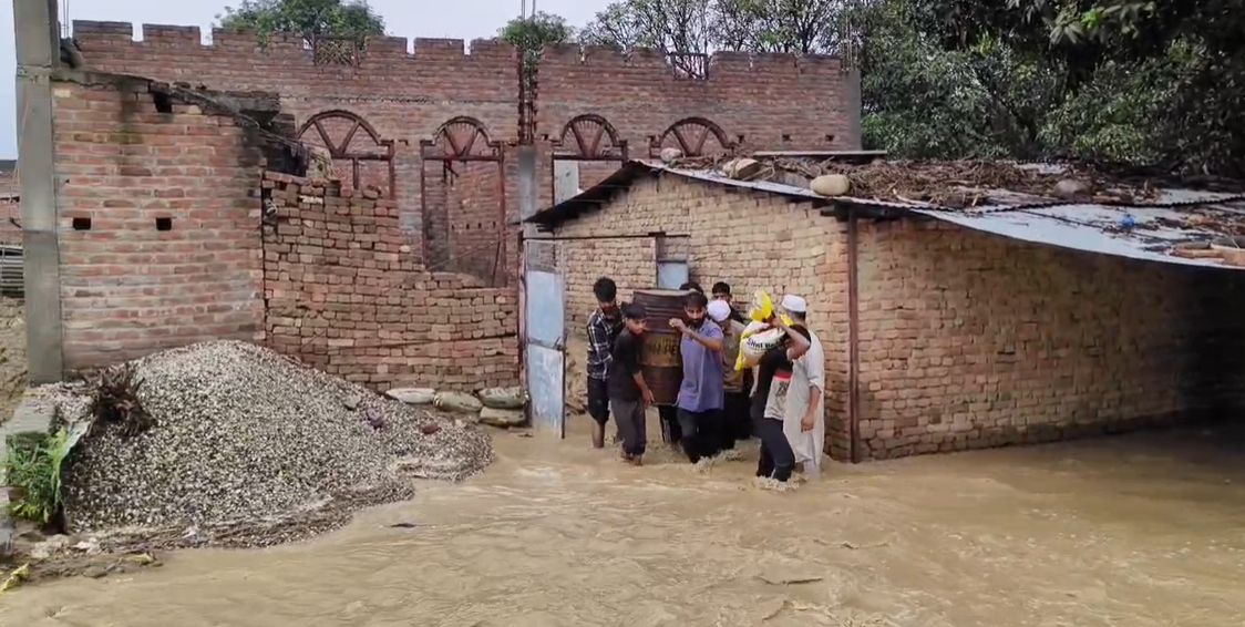 बनाई गई सुरक्षा दीवार भी न रोक सकी बाढ़ के पानी को