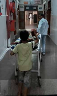 अपनी पत्नी को स्ट्रेचर पर ले जाता पति