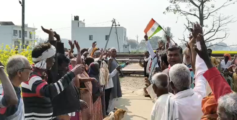 रेल पटरी पर लगा लोहे का गार्टर बन रहा मुसीबत, ग्रामीणों ने एकजुट हो उठाई मांग, रेलवे के खिलाफ किया प्रदर्शन