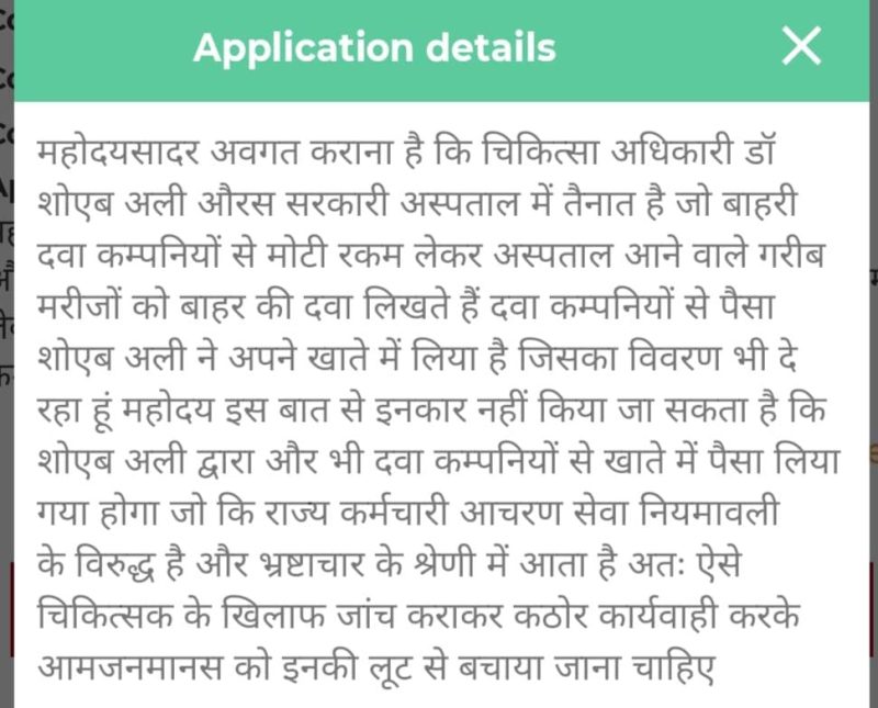 शिकायत मिलते ही मुख्य चिकित्सा अधिकारी (सीएमओ) ने जांच टीम गठित की। जांच के दौरान डॉक्टर शोएब के पिछले तीन महीनों के बैंक खाते की स्टेटमेंट खंगाली गई। बैंक विवरण में यह स्पष्ट पाया गया कि डॉक्टर के सैलरी वाले अकाउंट में फार्मा कंपनी से 20,000 रुपये का भुगतान हुआ है।