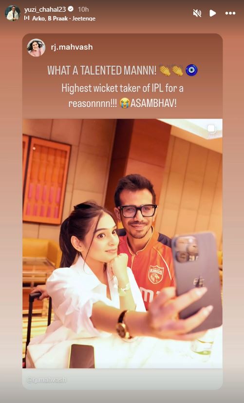 मैच के बाद आरजे महवश ने इंस्टाग्राम पर अपनी भावनाएं साझा करते हुए लिखा “कितना काबिल इंसान है। अब समझ आया कि ये IPL में सबसे ज्यादा विकेट लेने वाला खिलाड़ी क्यों है। असंभव! उनकी ये इंस्टा स्टोरी सोशल मीडिया पर वायरल हो गई और फैंस ने भी चहल को “कमबैक किंग” कहना शुरू कर दिया।